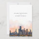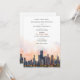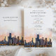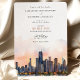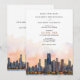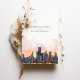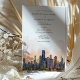 Announce your upcoming wedding with this sophisticated invitation, featuring the iconic skyline of Chicago, Illinois. The card showcases a stunning watercolor illustration of Chicago’s famous architecture, beautifully depicted with the serene hues of dawn or dusk. The elegant serif and script fonts in warm terra cotta and muted gold add a touch of modern chic. Perfect for couples planning a contemporary urban wedding, this invitation combines the charm of Chicago's skyline with a refined artistic flair.