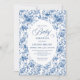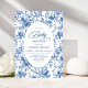 Convite Chic Classic Blue Toile de Jouy Floral Baby Shower