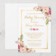 Convite Chic Clássico Floral Chuveiro de Bebê Moldura Dour