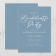 This dusty blue coastal bachelorette party invitation features classic white script for a bride who is going to have an upscale event at a beach with her friends. A chic, minimalist bachelorette party invite for a seaside outing at the coast.