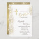 Convite Chic Dourado Cross Baptism Dourado Glitter Confett