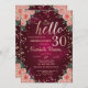 Convite Chic Dourado Tiara, Diamantes Burgundy Floral Alô