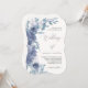 Convite Chic Dusty Blue Floral com Casamento Calliográfico
