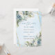 Convite Chic Dusty Blue Floral Dourado Salvar a Data