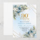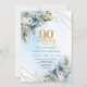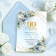 Convite Chic Dusty Blue White Flowers 90th Birthday Invite