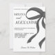 Um convite de casamento preto e branco chique com um design de laço elegante, misturando elegância moderna com sofisticação atemporal.