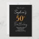 Convite Chic Elegant Black & Pink Photo 50th Birthday