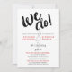 Elevem seu dia especial com nosso convite de casamento jovem e elegante. Adorada com um 'Nós fazemos' preto, ousado e escrito manualmente contra uma canvas branca limpa, e detalhes do casamento vermelho e branco, sua simplicidade expele encanto. Personalize os detalhes de RSVP no elegante retorno monocromático e aproveite a conveniência dos formatos impressão ou digital. Embarque no seu começo perfeito!