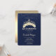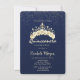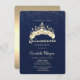 Convite Chic Floral Crown Navy Blue Gold Quinceañera