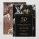 Este convite de aniversário de 50 anos de casamento floral preto e dourado elegante pode ser personalizado com suas informações em tipografia moderna e uma foto especial no verso. Criado por Thisisnotme©