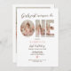 Celebrate her first milestone with this Girls Just Wanna Be One invitation — a stylish and modern photo design featuring soft blush tones and elegant script. The “ONE” cut-out photo layout adds a personal, heartwarming touch, perfect for capturing your little girl’s charm.