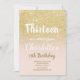 Mbre de ouro amarelo-esverdeado em 13 cor-de-rosa-pincelada Aniversário Um Convite de aniversário moderno de treze com convite brilhante a ouro moderno, original e simples e estilo escrito à mão, tipografia de pincel num fundo cor-de-rosa pincel verde-pincel totalmente personalizável.