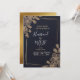 Featuring a sophisticated dark navy blue or black background, this design is beautifully accented with intricate gold line art floral illustrations and a delicate geometric gold frame. The contrast between the deep background and the shimmering gold creates a luxurious and modern aesthetic.
