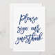 Sinal moderno e chic que diz "Por favor assine nosso guia" no Marinho