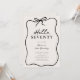 Make your birthday celebration one to remember with our stylish and modern 'Hello Seventy' Birthday Invitation. Featuring a dreamy cream background adorned with a playful black doodle frame and bow, this invitation also includes an elegant party template that can be tailored to your liking. Get ready to impress your guests with this customizable and chic invitation.