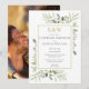 Com delicada folhagem em aquarela, este convite de chá de casal chic pode ser personalizado com suas iniciais monograma douradas e informações especiais do chá de casamento, com sua foto especial no verso. Criado por Thisisnotme