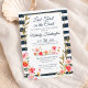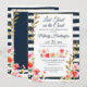 Listras azuis-marinho e brancas criam uma sensação de verão fresco com vibrações costeiras. Uma moldura dourada e flores cor-de-rosa brilhante, vermelho coral e laranja criam um design alegre e colorido que parece fresco, chique, moderno e cheio de celebração. O título "última parada na Costa" torna isso ótimo para celebrações com tema náutico ou azul-marinho costeiro.