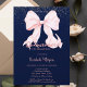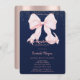 Convite Chic Pink Bow Confetti Navy Blue Quinceañera
