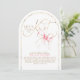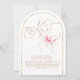 This She’s Tying the Knot bridal shower invitation blends timeless romance with a playful, modern spirit. Flowing gold calligraphy sweeps across a crisp white background, instantly setting a joyful and celebratory tone. A hand-painted pink watercolor bow adds a charming finishing touch—like the ribbon on a thoughtfully wrapped gift—soft, unexpected, and undeniably chic. The graceful arch shape brings a sculptural quality to the design, creating a fresh silhouette that feels both modern and meaningful.