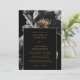 Este convite de casamento floral preto e dourado pode ser personalizado com suas informações em tipografia moderna e os detalhes do seu casamento no verso, juntamente com o código QR do site do seu casamento. Projetado por Thisisnotme©