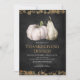 Este cartão de convite jante de Ação de Graças chique e elegante apresenta um fundo preto com abóboras brancas. O verso apresenta um fundo dourado falso/falso com padrões geométricos a preto. Personalize-o para as suas necessidades. Você pode encontrar produtos correspondentes na minha loja.