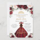 Convite Chic Quinceañera Burgundy Blush Floral Charro Dour