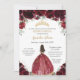 Convite Chic Quinceañera Rich Burgundy Red Floral Princesa