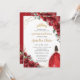 Convite Chic Quinceañera Rosas vermelhas Flores Princesa F