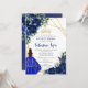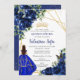 Convite Chic Royal Blue Floral Princesa Dourada Quinceañer