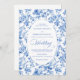Make a refined first impression with this wedding invitation featuring classic French toile de jouy roses in elegant shades of navy blue, royal blue, dusty blue, and deep blue. Inspired by timeless European floral design, this invitation blends traditional sophistication with modern elegance, perfect for a classic, romantic, or formal wedding celebration.