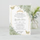 Este convite da Quinceañera apresenta uma estrutura geométrica dourada adornada por delicada cor d'água, verde verde, verde macio e borboletas de cerâmica. Personalize-o com seus detalhes de forma fácil e rápida, basta pressionar o botão personalizar para reorganizar e formatar o estilo e a colocação do texto. Também excelente para Sweet 16! c) O Feliz Cat Studio