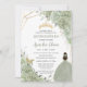 Convite Chic Sage Green Floral Princesa Dourada Quinceañer