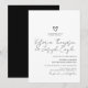 Convite Chic Script Coração Inclinado Preto Branco Casamen