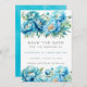 Convite Chic Teal Blue Peony Flor Salvar Data