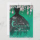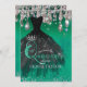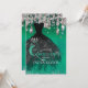 Convite de festa de aniversário verde chic com respingos glitter prateados e caligrafia de monograma linda. POR FAVOR, NOTE: São gráficos impressos planos - sem brilho, joias ou partes elevadas.