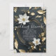 Convite Chic White Dourado Floral Wreath Photo Wedding Bru