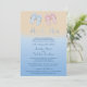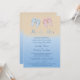 Um convite divertido, moderno e colorido para o casamento, que tem uma sensação relaxada de recurso de praia. A areia e o surf simulados fornecem o fundo para as sandálias bonito de sacudir azul e rosa no topo do convite. Foi usado um estilo de tipografia simples para o convite de casamento.