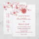 Este convite de casamento chinês em cores modernas apresenta um ramo de magnólia em arte linear vermelha e um símbolo de dupla felicidade vermelha em um fundo branco. Nomes da noiva e do noivo em uma elegante escrita caligráfica manuscrita. Com um texto tradicional chinês no verso.