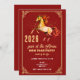 Modern Chinese New Year 2026 Horse New Year Party Invitation. A simple running horse painting for Chinese zodiac horoscope animal for 2026. It captures the spirit and motion of the horse. Warm red and gold accents symbolize the fire element. Add your invitation details.