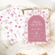 Chinoiserie rosa poeirento, convite para chá de fraldas floral. Belo design elegante com sotaques botânicos pintados à mão. Apresenta flores silvestres delicadas de cor-de-água moderadas, arco de tendências e letra de script de tipografia. Você pode escolher convites impressos e/ou fazer o download instantâneo do modelo digital. Perfeito para um chá de bebê na moda.
