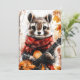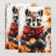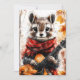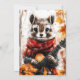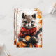 Um pedaço de cachecol vermelho toca violão entre as folhas do outono. As vibrações da floresta espinhosa encontram encanto animal divertido.