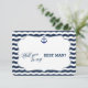 Um design elegante com ondas azuis marinho e uma bela âncora. É o toque final perfeito para qualquer casamento elegante com tema náutico de praia. Use a ferramenta Personalizar para adicionar suas informações, alterar cores e fontes. Na minha Coleção de Casamento Âncora Ondas Navy você pode encontrar outros materiais de casamento. Seja diferente!