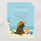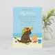 Chocolate Labrador Puppy Palha Palha Chapéu Convite para Chá de fraldas. O laboratório de chocolate está se divertindo na praia! Brincadeira e engraçada Labrador Retriever arte criada por Naomi Ochiai do Japão. Boa ideia para pessoas de cães que amam Labrador Retrievers.