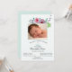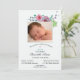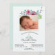 Um aglomerado de florais cor-de-rosa suave e verdes enquadra a foto do seu bebê. Embelado com uma pequena cruz. Visite nossa loja irmã Pixieprints.com para todas as suas necessidades de convite.