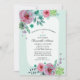 Florais suaves em rosa e verde enquadram o convite em menta pálido. Adornado com uma pequena cruz. Parte da "Coleção Chrisanthi".