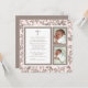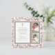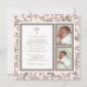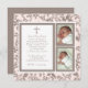 Bonito convite de Natal cor-de-rosa e castanho com cruz decorativa e quadro paisley com duas fotos. Personalizar para batismo, comunhão ou qualquer evento religioso especial.