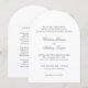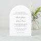 Convite de casamento elegante com um design simples e tradicional com seus nomes em script e seus detalhes de evento em uma fonte serif.