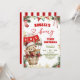 Christmas Bear Air Balloon First Birthday Invitation, Winter Beary 1st Birthday Invite, Editable Snowflakes Kids Birthday Invite