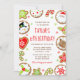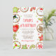 This cute and fun birthday invitation features iced cookies with adorable characters such as a snowman, reindeer and Santa Claus. Holly, candy cane and snowflakes add a festive touch. The text combines handwritten script and sans serif fonts for a stylish and modern look. This is perfect for a Christmas themed birthday party.
