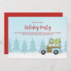Rustic Cute Blue Car or vintage Woodie wagon with a Freshly Cut Christmas Christmas holiday party festive winter, modern rustic chic winter scene, country whimsical fun funny cute, trendy stylish calligraphy script, whimsical typography font text, trees woodland car automobile, car Christmas tree on top, simple Christmas celebration invite, family friends get together, modern calligraphy celebration holiday. With a QR code with a map and directions icon to share your location and map URL